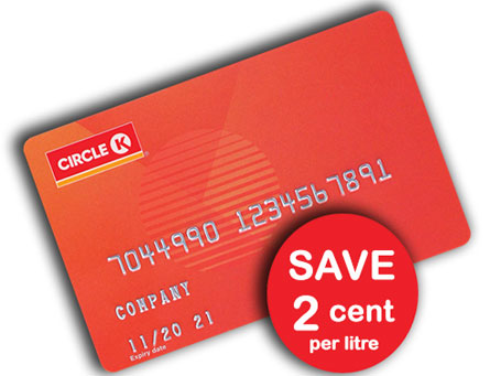 Our free fuel card entitles you to 2 Cent per Litre Off any fuel purchased at a CircleK service station. You also get up to 1 week’s free credit as all purchases are paid for by direct debit.